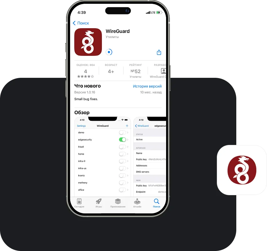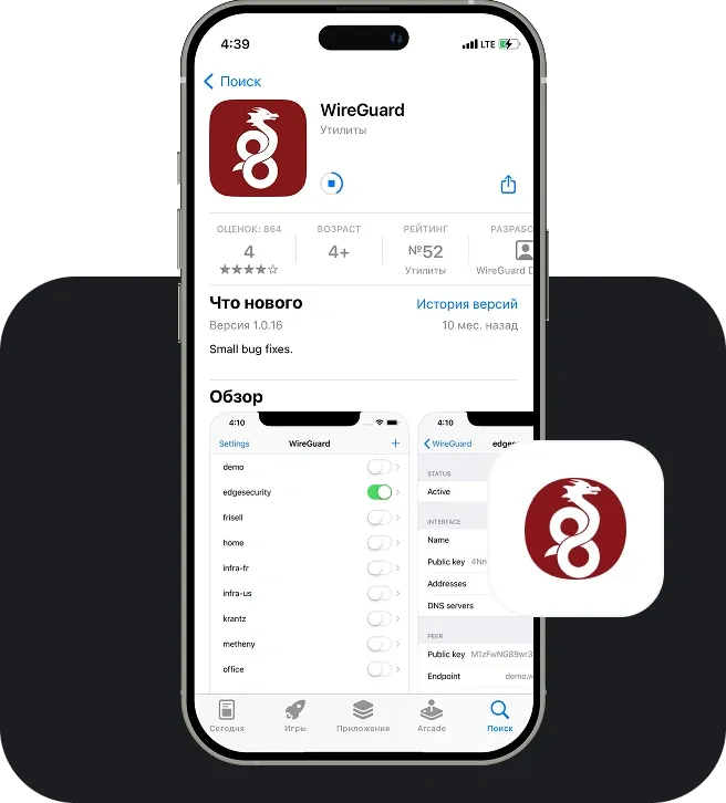 You can download WireGuard from the official website or from app stores — App Store, Google Play. WireGuard Windows, macOS, Linux versions are available for PC, and even clients for Keenetic and MikroTik routers