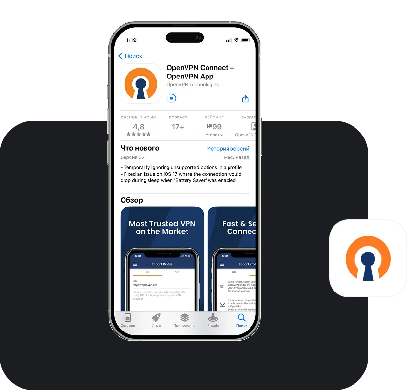 Подключите OpenVPN connect и получите надёжный сервер для доступа интернету без ограничений. Готовый файл конфигурации OpenVPN включает ключи и настройки для стабильного соединения.