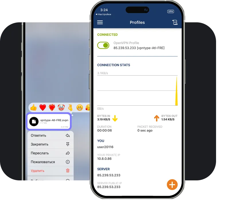 Файл конфигурации (.ovpn) предоставляется VPN-провайдером. В нём содержатся ключи, адрес сервера и все необходимые параметры. Такой файл можно импортировать в приложение OpenVPN для быстрого подключения.